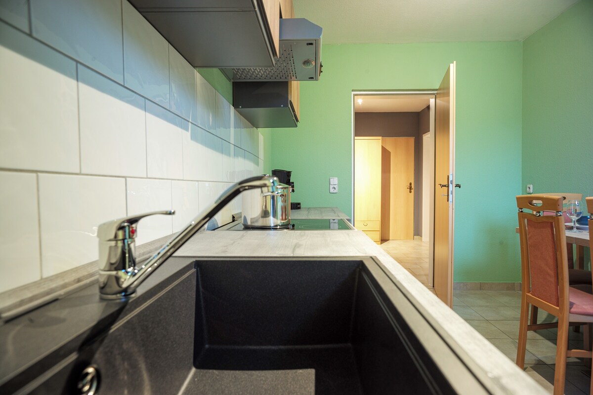 Das Apartment verfügt über 2 Schlafzimmer, einen Flachbild-Sat-TV, eine ausgestattete Küche mit einem Kühlschrank und einem Kochfeld sowie 1 Bad mit einer Dusche. Handtücher und Bettwäsche werden gestellt.